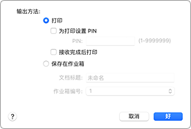 将打印作业保存至打印机的硬盘中。 选择保存在作业箱时,请从作业箱编号列表中选择一个单独的作业箱编号作进行保存。