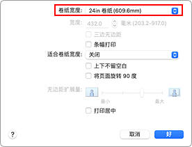 将卷纸宽度设置为装入打印机的卷纸宽度。