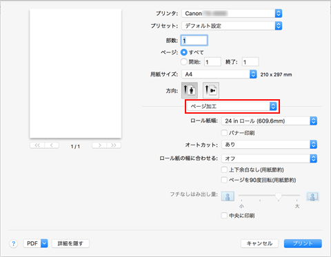 ポップアップメニューから[ページ加工]を選択