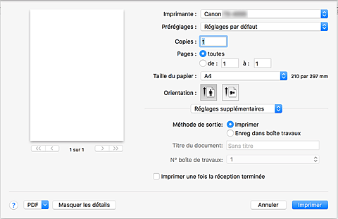 Ce paramètre peut être défini lorsque vous sélectionnez Imprimer.
