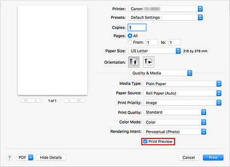 Selezionare la casella di controllo Antepr. di stampa (Print Preview).