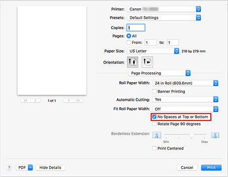 Quando si esegue la stampa della carta in rotolo, è possibile salvare la carta riducendo i margini superiore e inferiore durante la stampa.