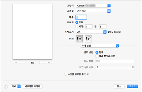 인쇄(Print)를 선택한 경우 설정할 수 있습니다.
