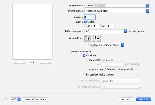 Ce paramètre peut être défini lorsque vous sélectionnez Imprimer.