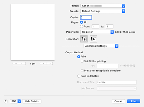 Salvare il processo di stampa sul disco rigido della stampante. Quando si seleziona Salva in casella lavoro (Save in Job Box), selezionare la singola casella in cui salvare dall'elenco N. casella lavoro (Job Box No.).