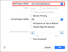 Impostare Largh. carta in rot. (Roll Paper Width) sulla larghezza della carta in rotolo caricata nella stampante.