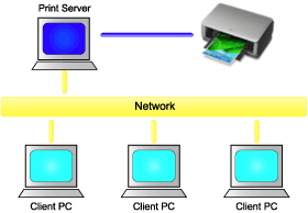 When computers are used in a network environment, documents can be printed from multiple computers that share a single printer.