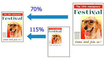 عندما يكون حجم الورق بـ الطابعة أصغر من حجم الصفحة (Page Size) فسيتم تقليل حجم صورة الصفحة. عندما يكون حجم الورق بـ الطابعة أكبر من حجم الصفحة (Page Size) فسيتم تكبير صورة الصفحة.تحديد عامل ضبط الحجم