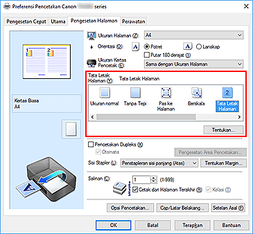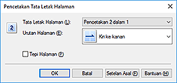 Fungsi pencetakan tata letak halaman memungkinkan Anda untuk mencetak lebih dari satu halaman gambar pada satu lembar kertas.