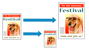Če je vrednost Velikost papirja v tiskalniku (Printer Paper Size) manjša od vrednosti Velikost strani (Page Size), bo slika strani pomanjšana. Če je vrednost Velikost papirja v tiskalniku (Printer Paper Size) večja od vrednosti Velikost strani (Page Size), bo slika strani povečana.Trenutne nastavitve so prikazane v predogledu nastavitev na levi strani gonilnika tiskalnika.