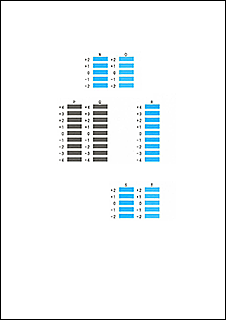 Vzorci prilagoditve tiskalne glave se natisnejo na tretji list.