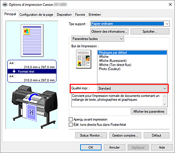 Important- Les paramètres de qualité d'impression qui peuvent être sélectionnés peuvent différer en fonction d'un profil d'impression.