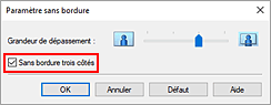 Reportez-vous à la section "Des bordures s'affichent dans l'impression à bord perdu" pour obtenir plus d'informations sur la façon de définir la quantité en trop.