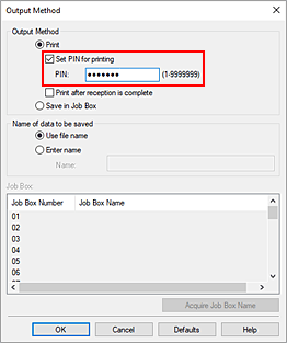 Mettere un segno di spunta accanto a Imposta PIN per stampa (Set PIN for printing) e immettere un numero da una a sette cifre in PIN.