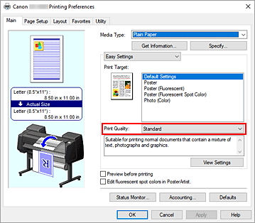 Para Qualidade impr. (Print Quality), selecione Mais Alta (Highest), Alta (High) ou Padrão (Standard) de acordo com sua finalidade.
