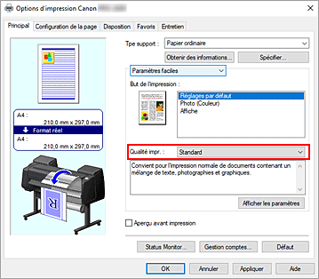 Important- Les paramètres de qualité d'impression qui peuvent être sélectionnés peuvent différer en fonction d'un profil d'impression.