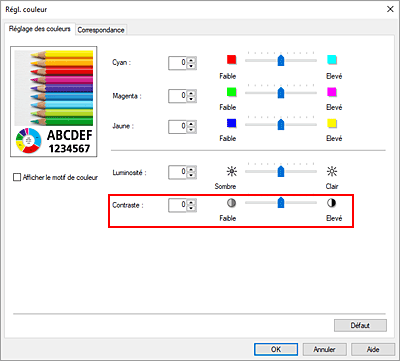 La boîte de dialogue Régl. couleur s'affiche.Réglez le contraste
