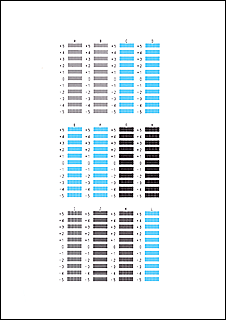 W poszczególnych polach wprowadź numer wzoru z najmniej widocznymi smugami lub paskami spośród wydrukowanych wzorów.