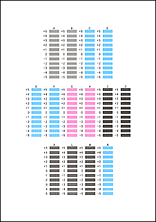 En cada campo de entrada introduzca el número del patrón que tenga las franjas o las rayas menos perceptibles de entre todos los patrones impresos.