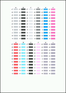 Jei norite išspausdinti šabloną ir patikrinti, ar dabartinis parametras tinkamas, atidarykite dialogo langą Kaip pradėti lygiuoti spausdinimo galvutę (Start Print Head Alignment) ir spustelėkite Spausdinimo lygiavimo reikšmė (Print Alignment Value).
