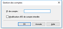 Cette option interdit la modification des ID de compte déjà configurés.