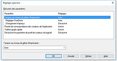 La boîte de dialogue Réglages spéciaux s'affiche.
