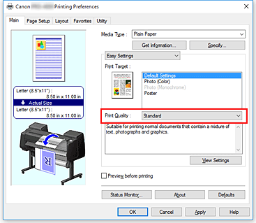 Per Qualità di stampa (Print Quality), selezionare Più alta (Highest), Alta (High) o Standard in funzione delle esigenze.