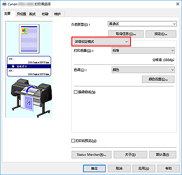 从页设置选项卡的页尺寸列表中,选择与使用应用程序软件创建的文档相同的尺寸。