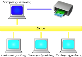 Όταν οι υπολογιστές χρησιμοποιούνται σε περιβάλλον δικτύου, τα έγγραφα μπορούν να εκτυπωθούν από πολλούς υπολογιστές που μοιράζονται έναν εκτυπωτή.