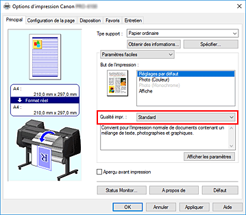 Important- Les paramètres de qualité d'impression qui peuvent être sélectionnés peuvent différer en fonction d'un profil d'impression.