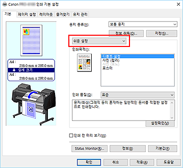 인쇄목적(Print Target)에서 문서에 맞는 설정을 선택합니다.