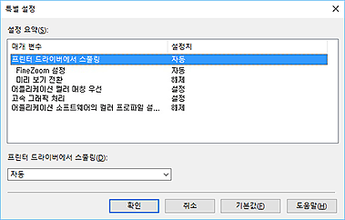 특별 설정(Special Settings) 대화 상자가 열립니다.