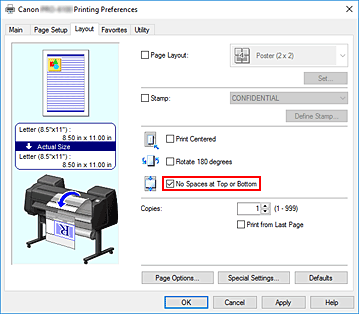 На вкладке Макет (Layout) установите флажок рядом с пунктом Без пробелов сверху/снизу (No Spaces at Top or Bottom).