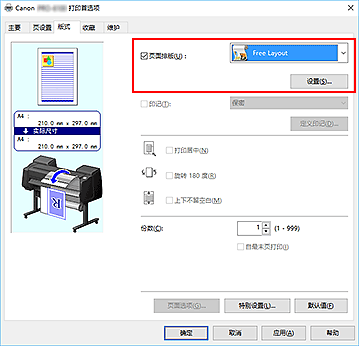 打印时,Canon imagePROGRAF Free Layout将启动。 Canon imagePROGRAF Free Layout可以对图像进行编辑和重新排列。