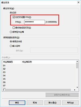 如果输入在打印机操作面板上设置的PIN码,将打印打印作业。