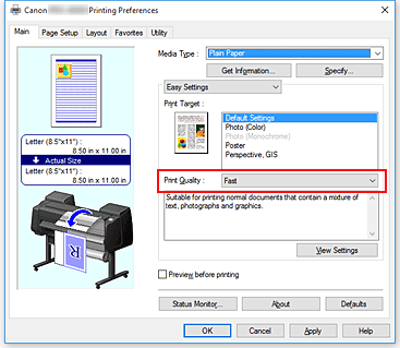 For Print Quality, select High, Standard or Fast according to your purpose.