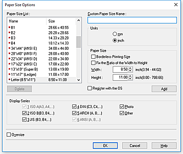 To narrow down the paper sizes displayed in Paper Size List, select the Display Series check box.