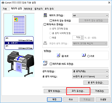 용지 크기 옵션(Paper Size Options) 대화 상자가 열립니다.