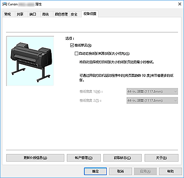 使用设备设置选项卡可以指定与打印机有关的设置。