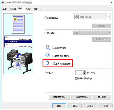 对于纸源选项卡的页设置,从卷纸(自动)、卷纸 1和卷纸 2中选择符合使用目的的设置。