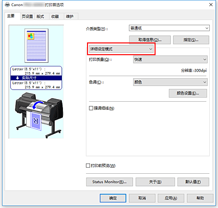 从主要选项卡的下拉菜单中选择详细设定模式。