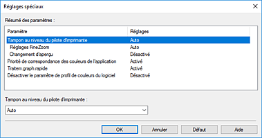 La boîte de dialogue Réglages spéciaux s'affiche.