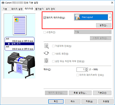 이 기능을 사용하려면 imagePROGRAF Printer Driver Extra Kit를 설치해야 합니다. Canon 웹 사이트로 이동하여 imagePROGRAF Printer Driver Extra Kit를 다운로드한 다음 설치하십시오.