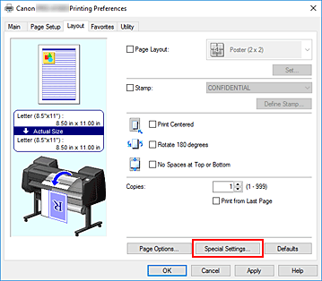 Нажмите Специальные настройки... (Special Settings...) на вкладке Макет (Layout)