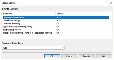 Откроется диалоговое окно Специальные настройки (Special Settings).