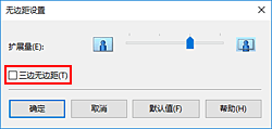 显示无边距设置对话框时,勾选三边无边距旁边的复选标记,然后单击确定。