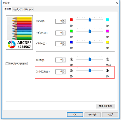 [色設定]ダイアログボックスが表示されます。コントラストを調整