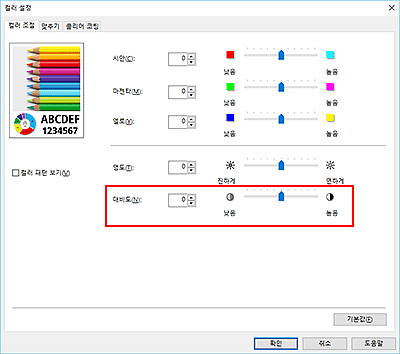컬러 설정(Color Settings) 대화 상자가 나타납니다.대비도 조절