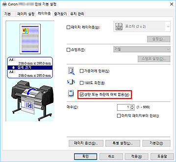 롤 용지에 인쇄하는 경우 상단 및 하단 여백을 줄여 용지를 절약할 수 있습니다.