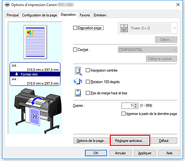 Cliquez sur Réglages spéciaux... dans l'onglet Disposition